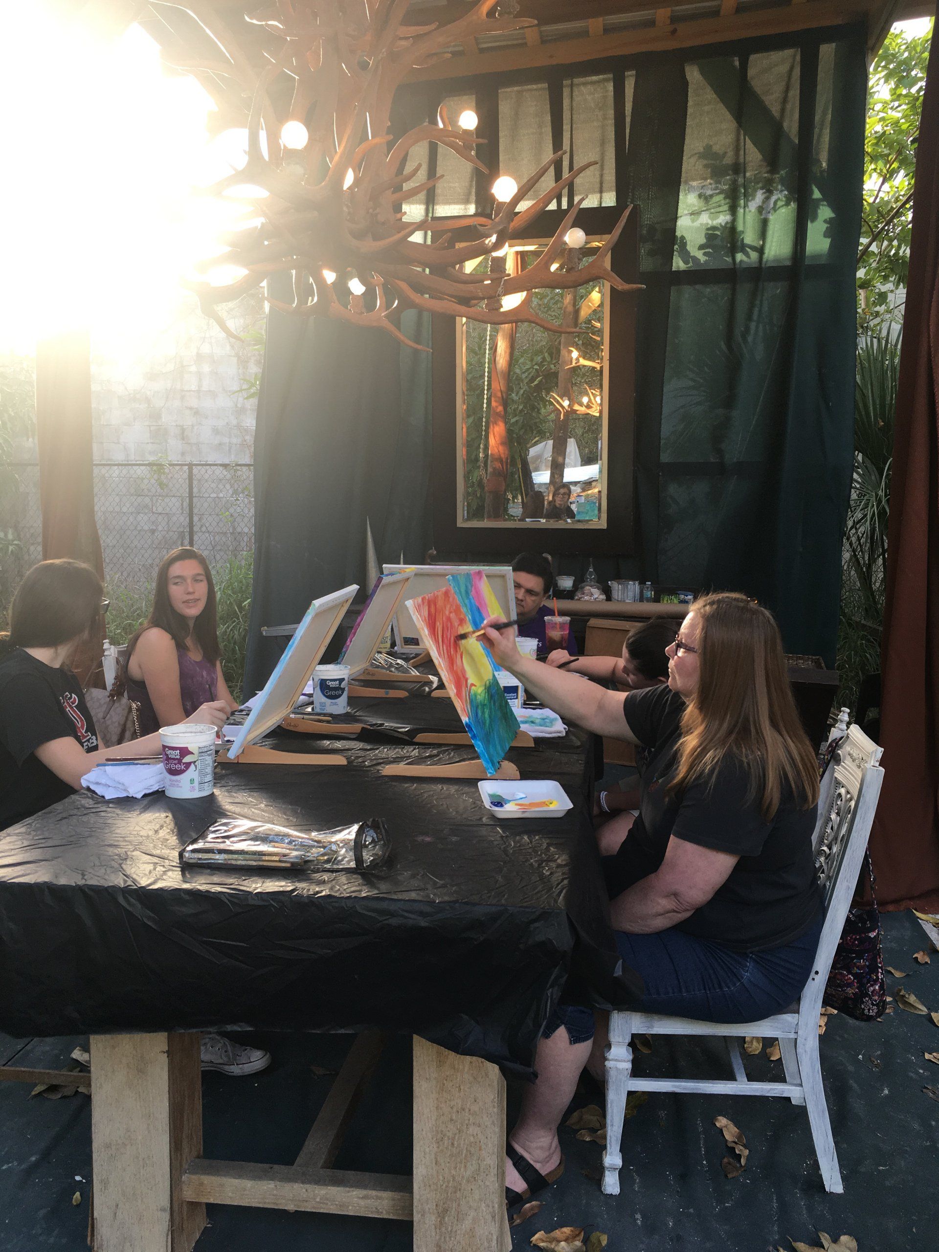I provide ALL the materials - paint, brushes, canvas, easels, etc.